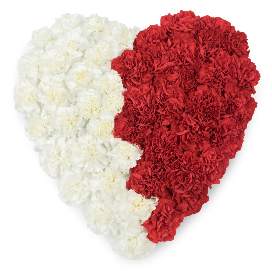 Celebrate meaningful moments with our beautiful heart-shaped bouquet, featuring a blend of elegant white and passionate red carnations. Each flower is carefully hand-selected to ensure freshness and superior quality.